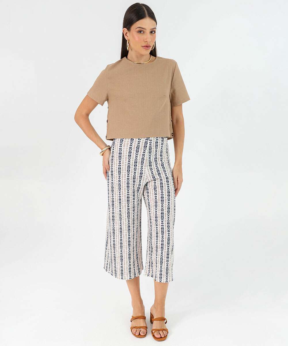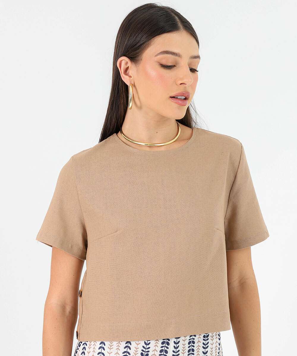 Blusa Feminina Manga Curta Marisa Marrom