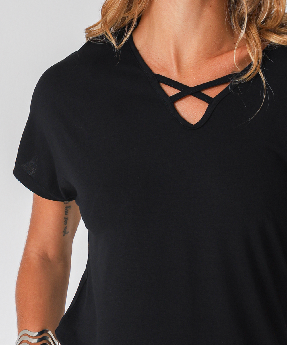 Blusa Feminina Manga Curta Marisa Preto