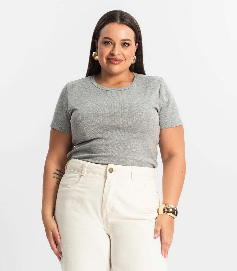 Blusa Feminina Manga Curta Ribana Sublime KO Cinza