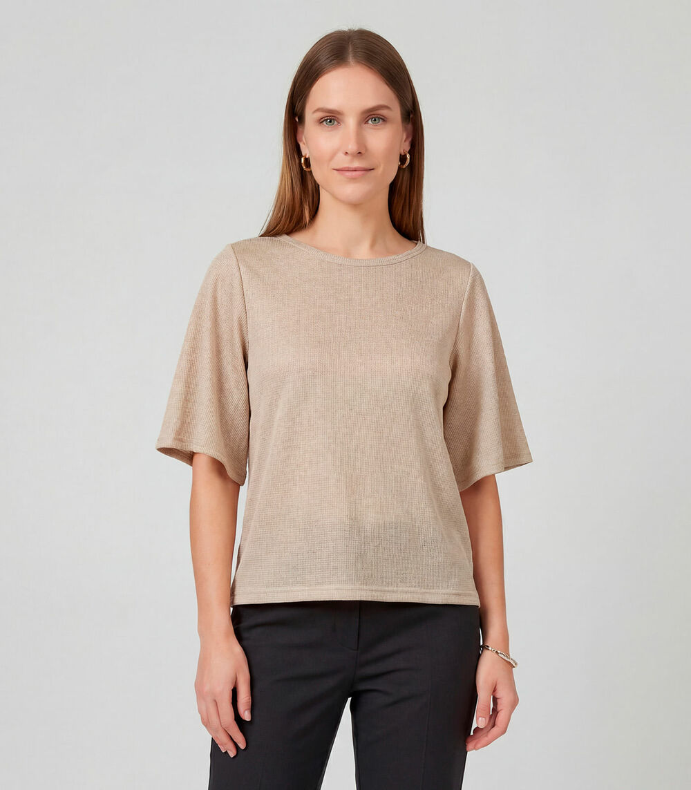 Blusa Feminina Manga Gôde Ampla Infinita Cor Bege