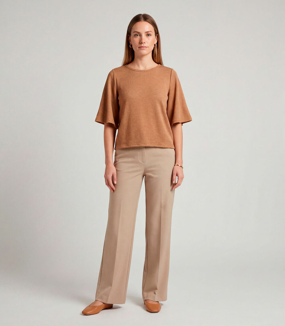 Blusa Feminina Manga Gôde Ampla Infinita Cor Marrom