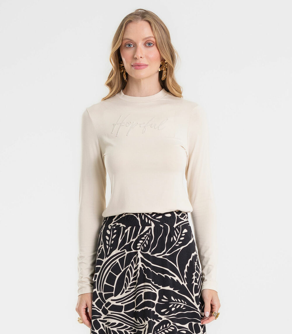 Blusa Feminina Manga Longa Com Bordado Rovitex Bege