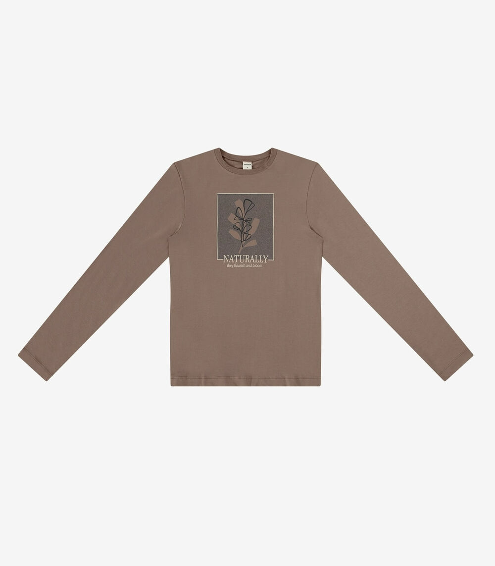Blusa Feminina Manga Longa Estampada Rovitex Marrom