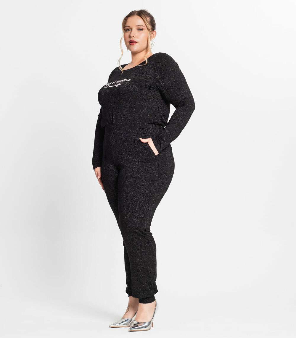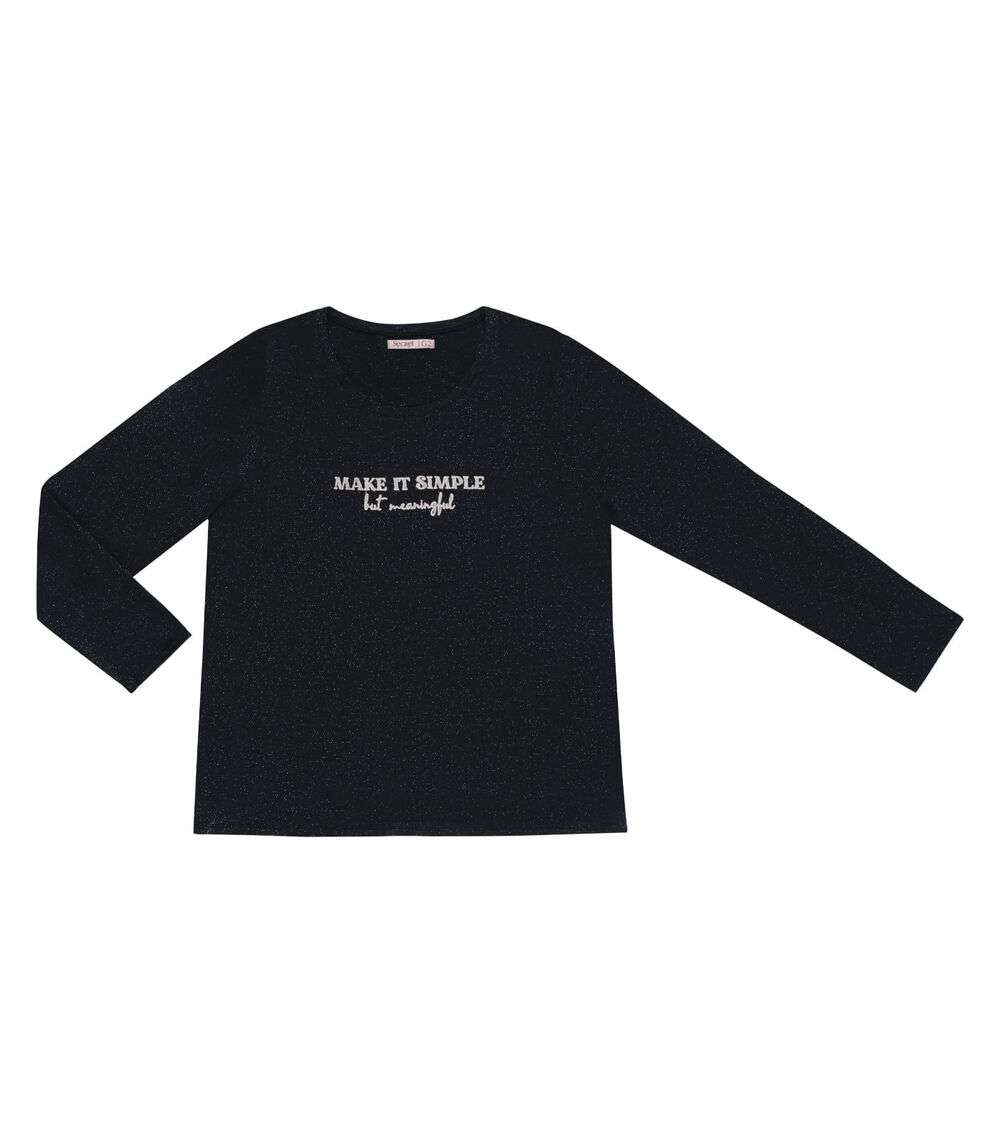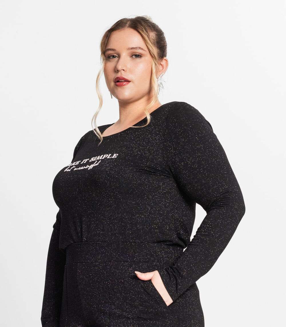 Blusa Feminina Manga Longa Plus Size Secret Glam Preto