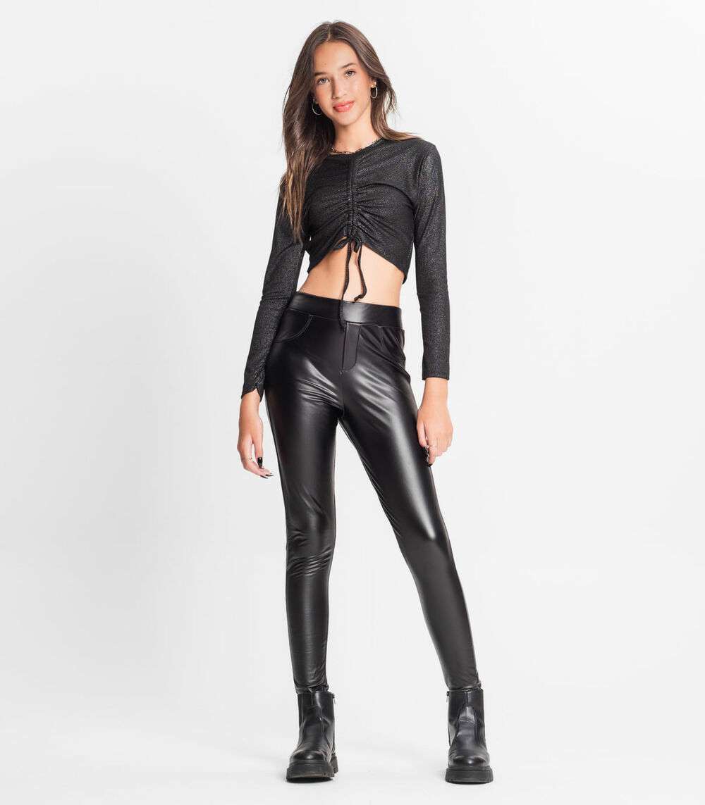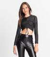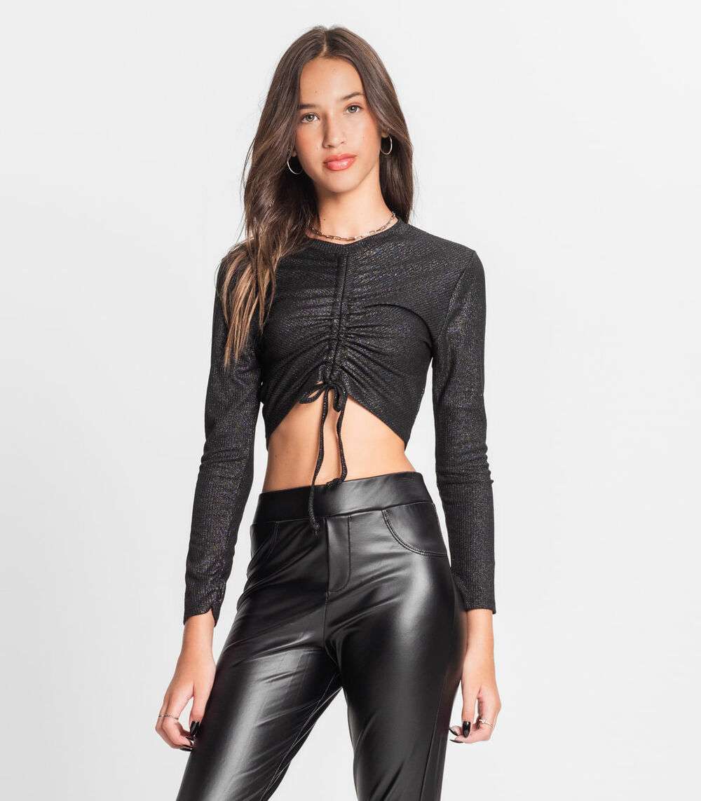 Blusa Feminina Manga Longa Ribana Canelada Minty Preto
