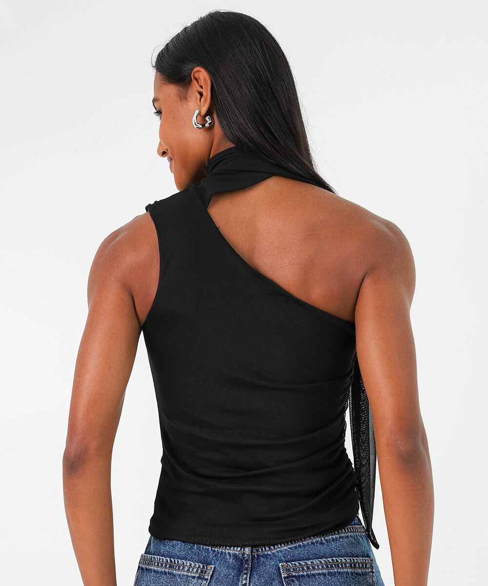 Blusa Feminina Ombro Só Drapeado Amarração Marisa Preto