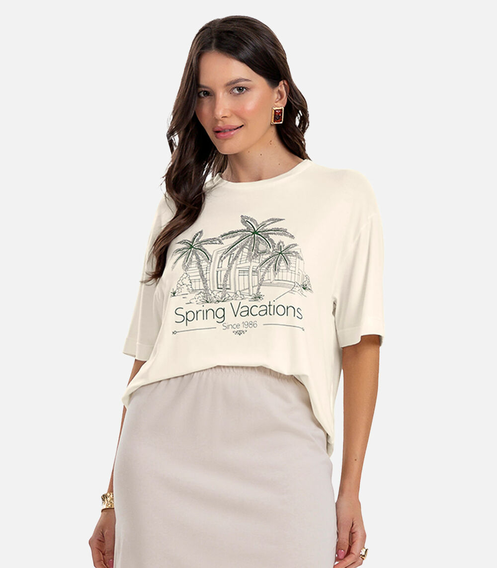Blusa Feminina Over com Estampa e Glitter Rovitex Bege