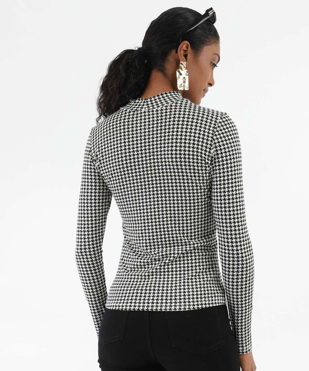 Blusa Feminina Pied Poule Manga Longa Marisa Preto