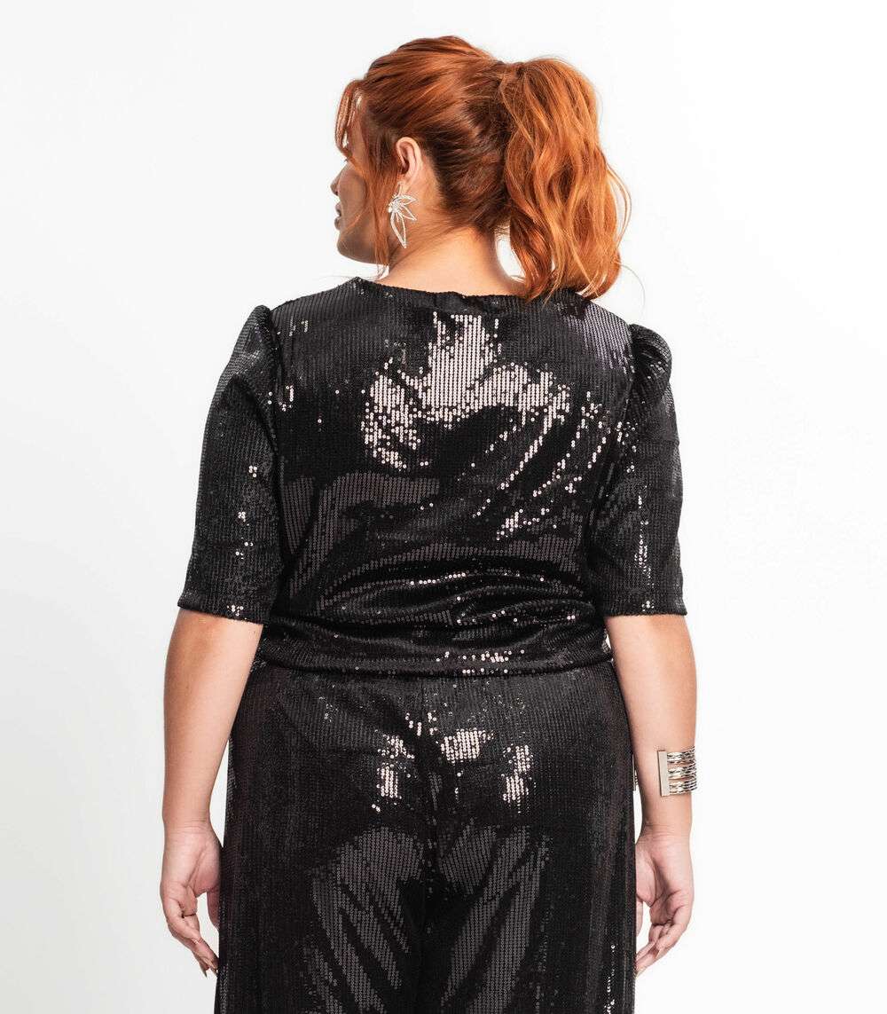 Blusa Feminina Plus Size Em Paetê Secret Glam Preto