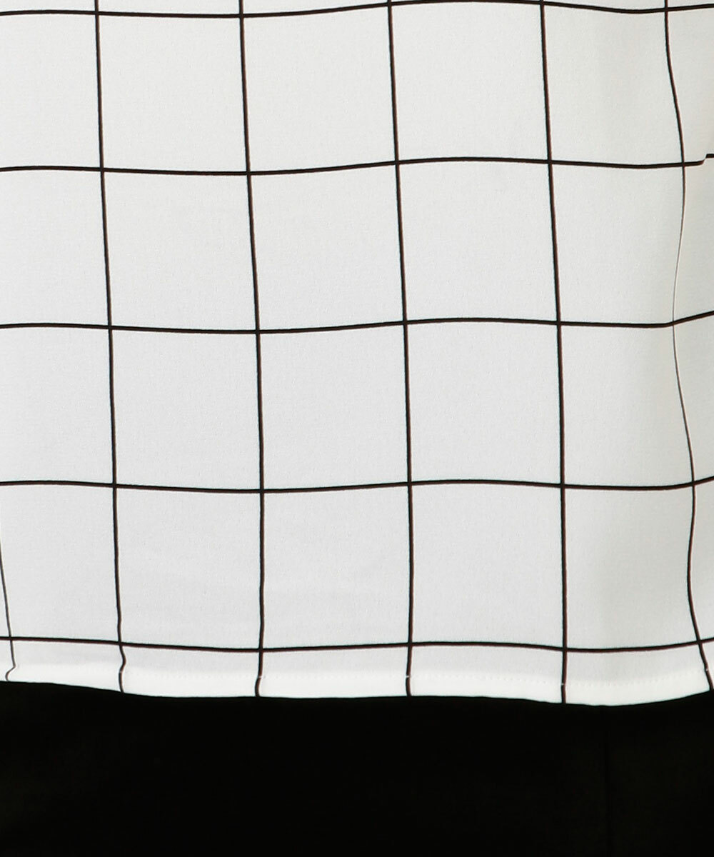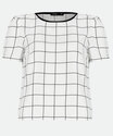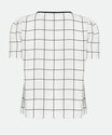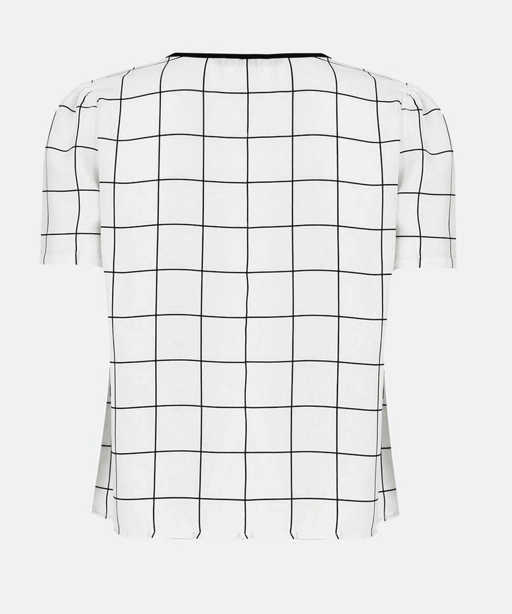 Blusa feminina confeccionada em tecido plano poliéster. Possui decote redondo, estampa quadriculada, manga curta, acabamento e costura no tom.