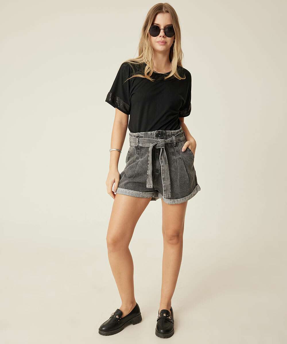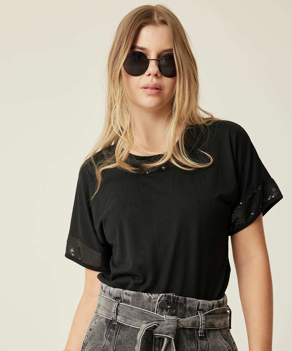Blusa Feminina Recorte Paetê Manga Curta Marisa