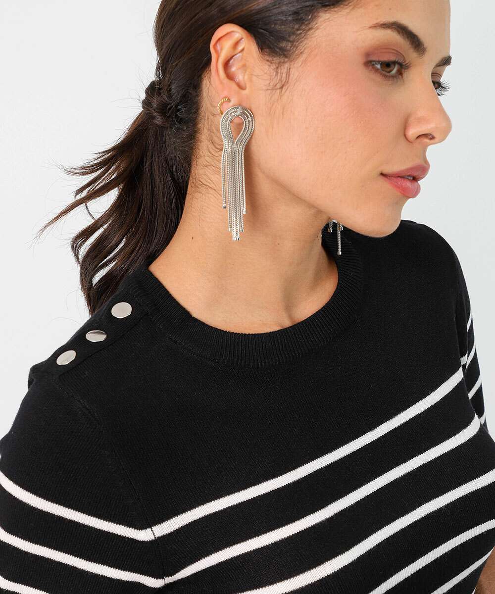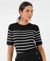 Blusa Feminina Tricô Listrada Manga Curta Marisa Preto