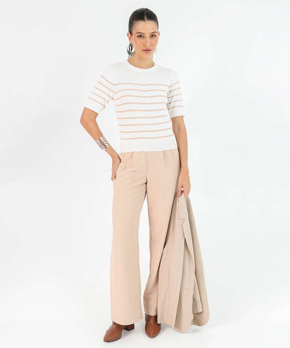 Blusa Feminina Tricô Listrado Marisa Off White