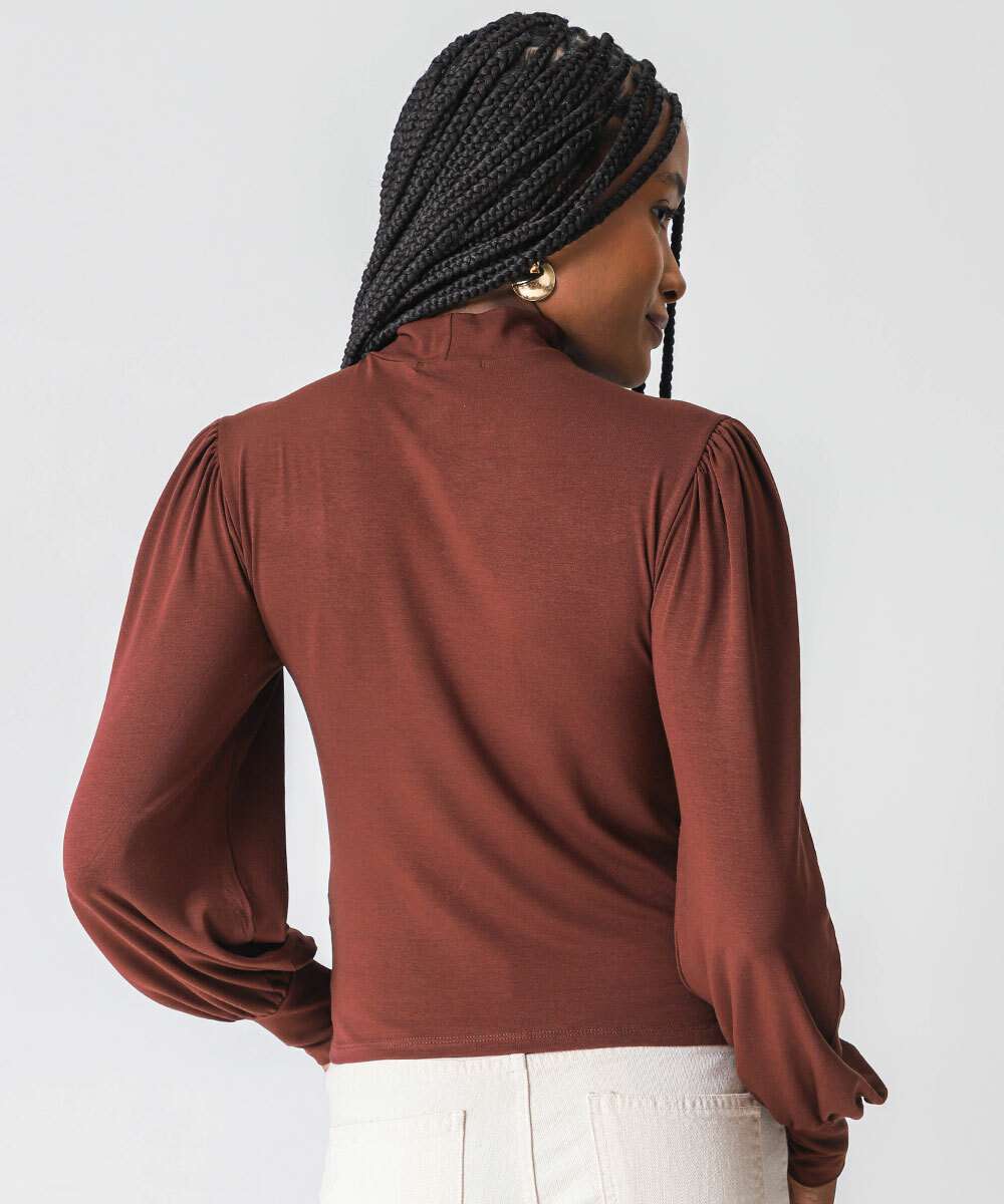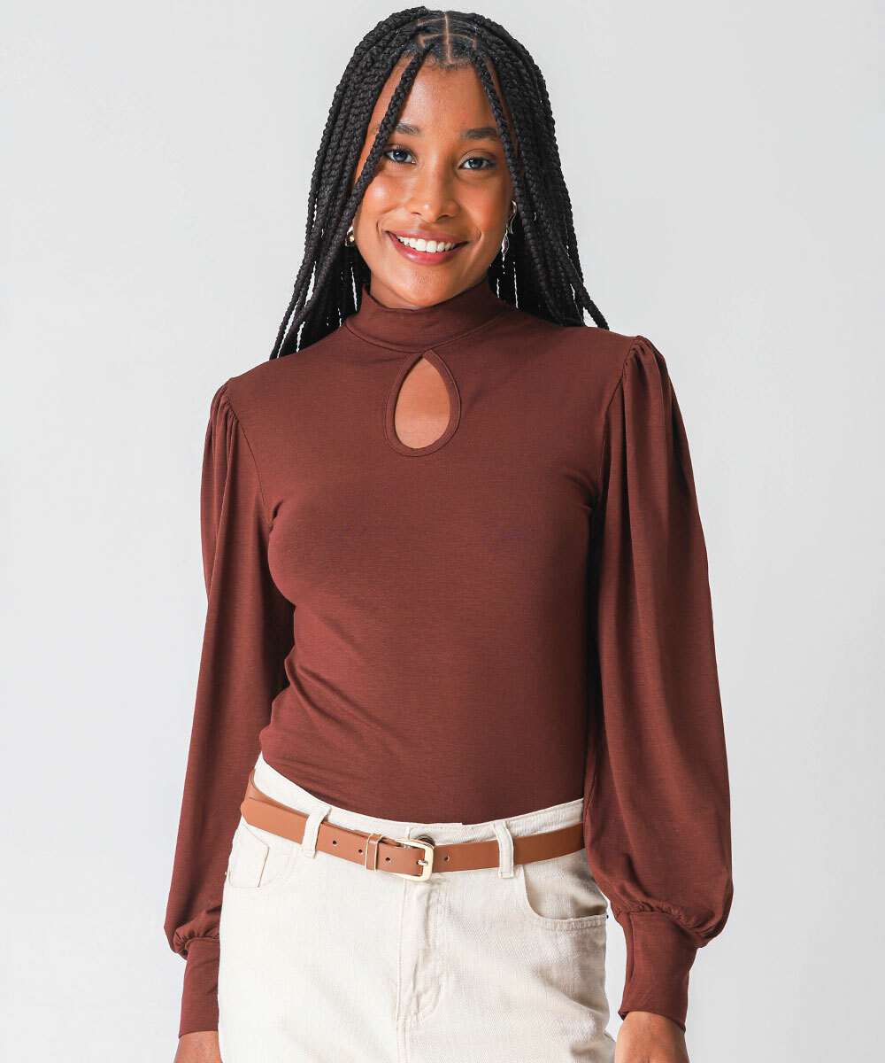 Blusa Feminina Vazado Manga Princesa Marisa Marrom