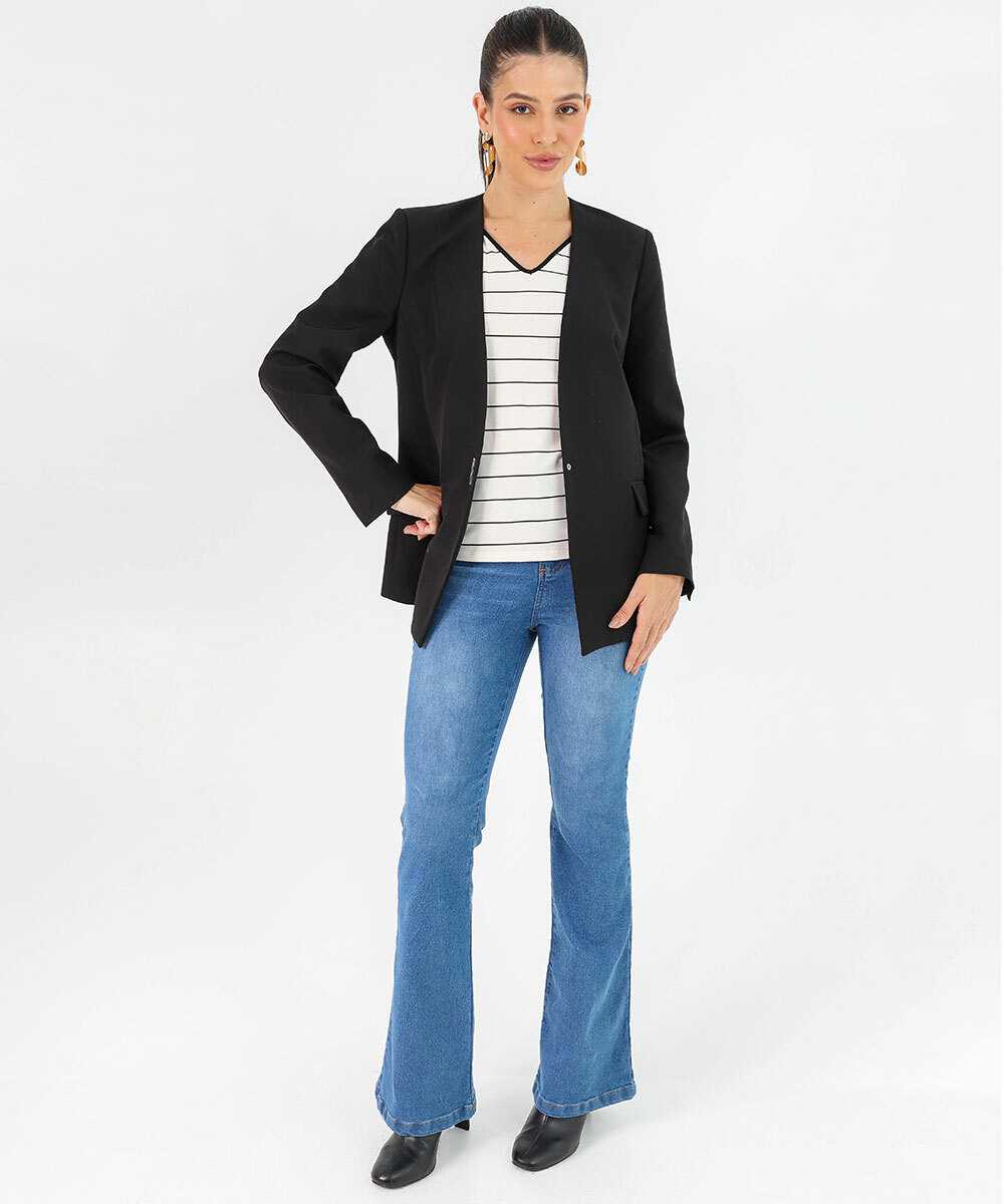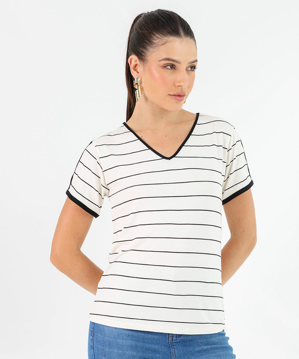 Blusa Feminina Viscolycra Listrada Manga Curta Vazada Marisa