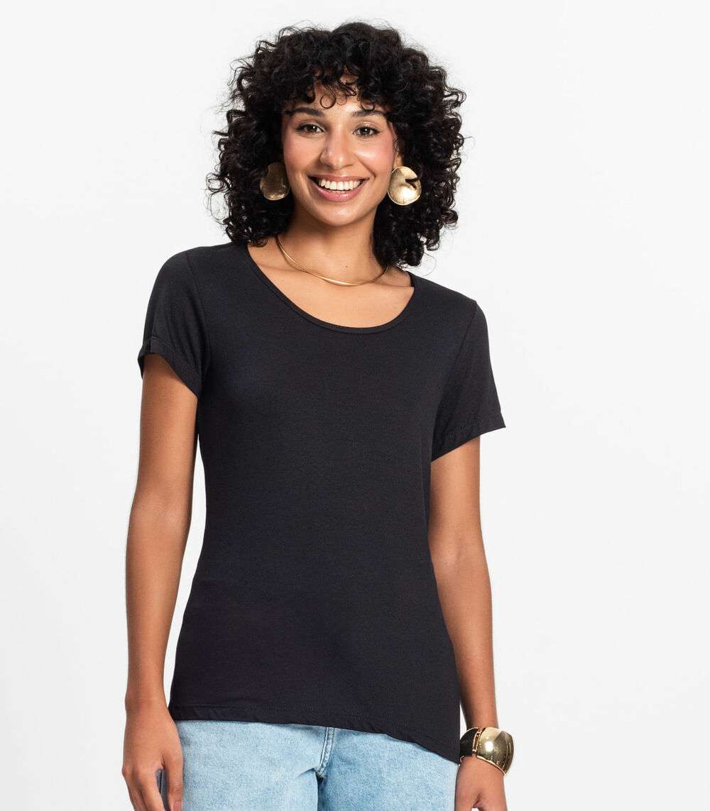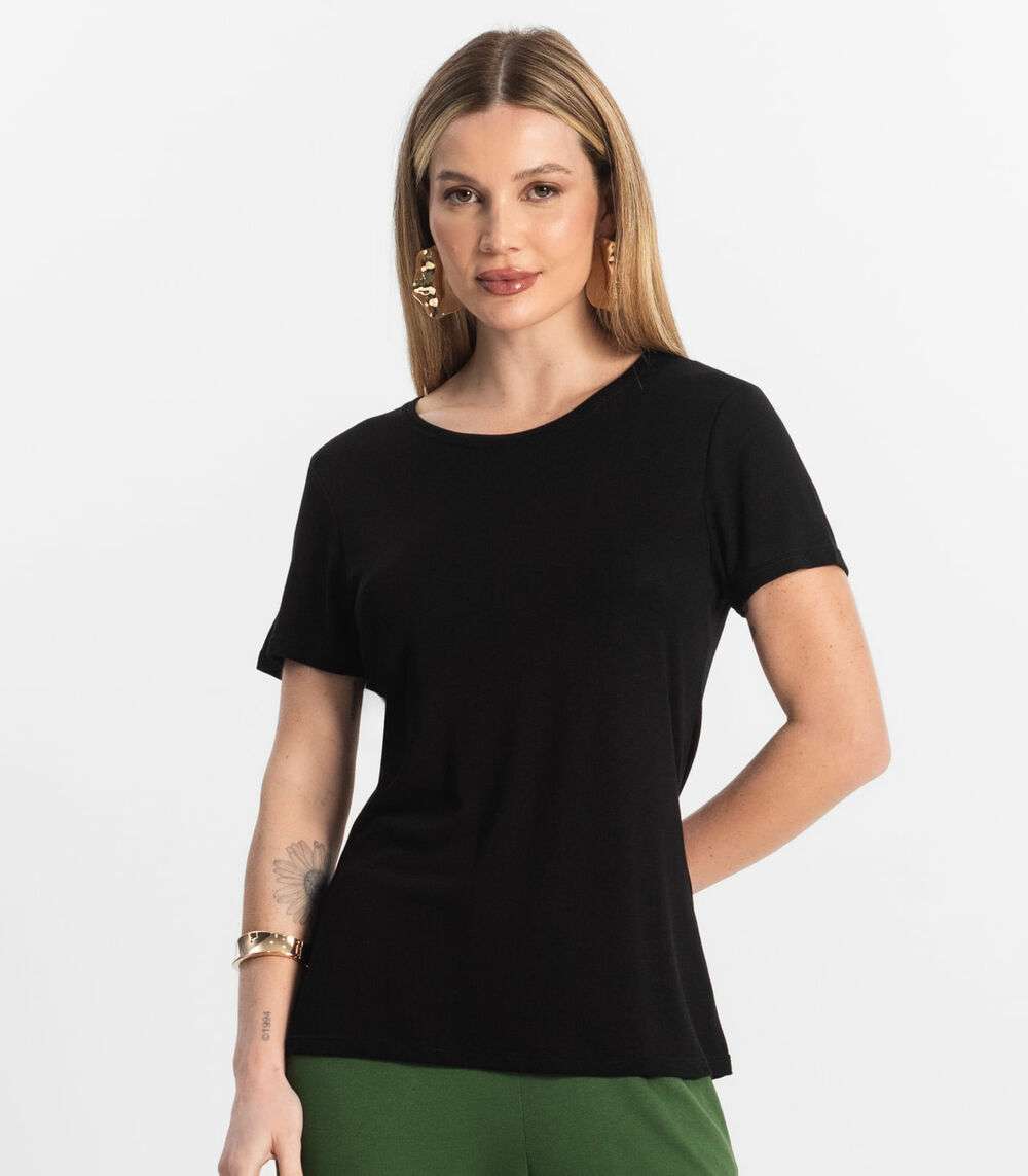 Blusa Feminina Viscotorcion Básica Rovitex Preto