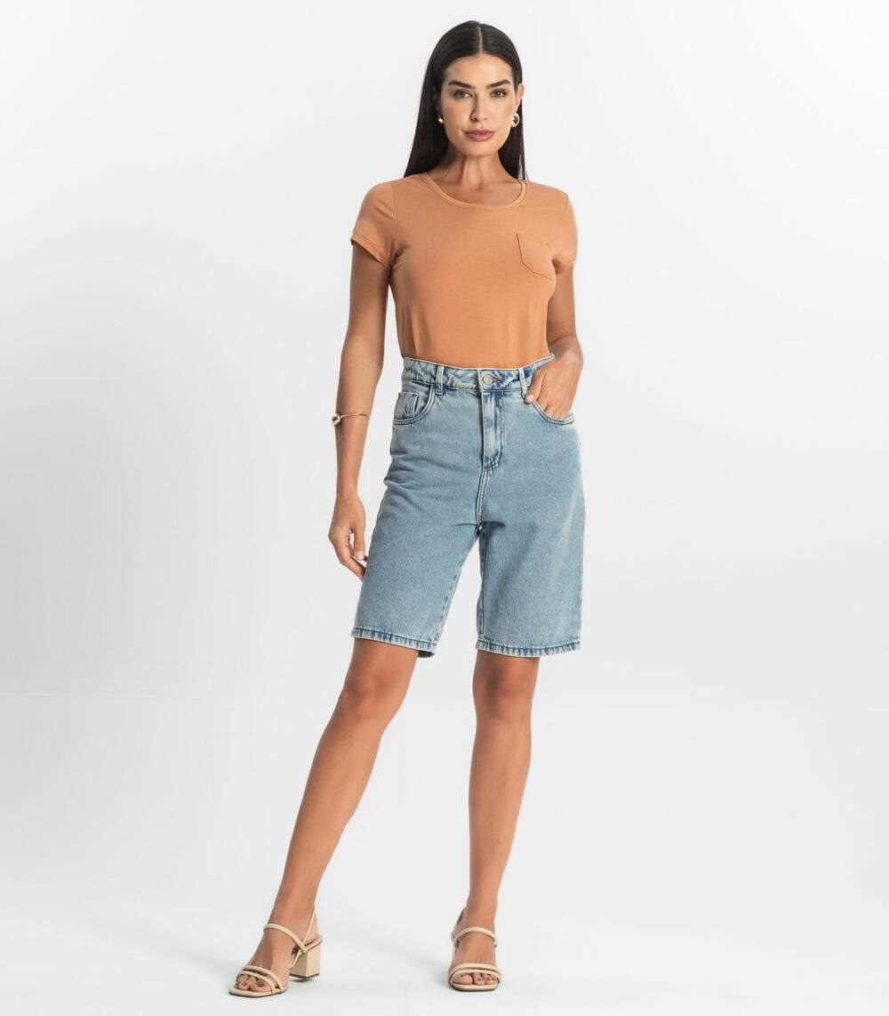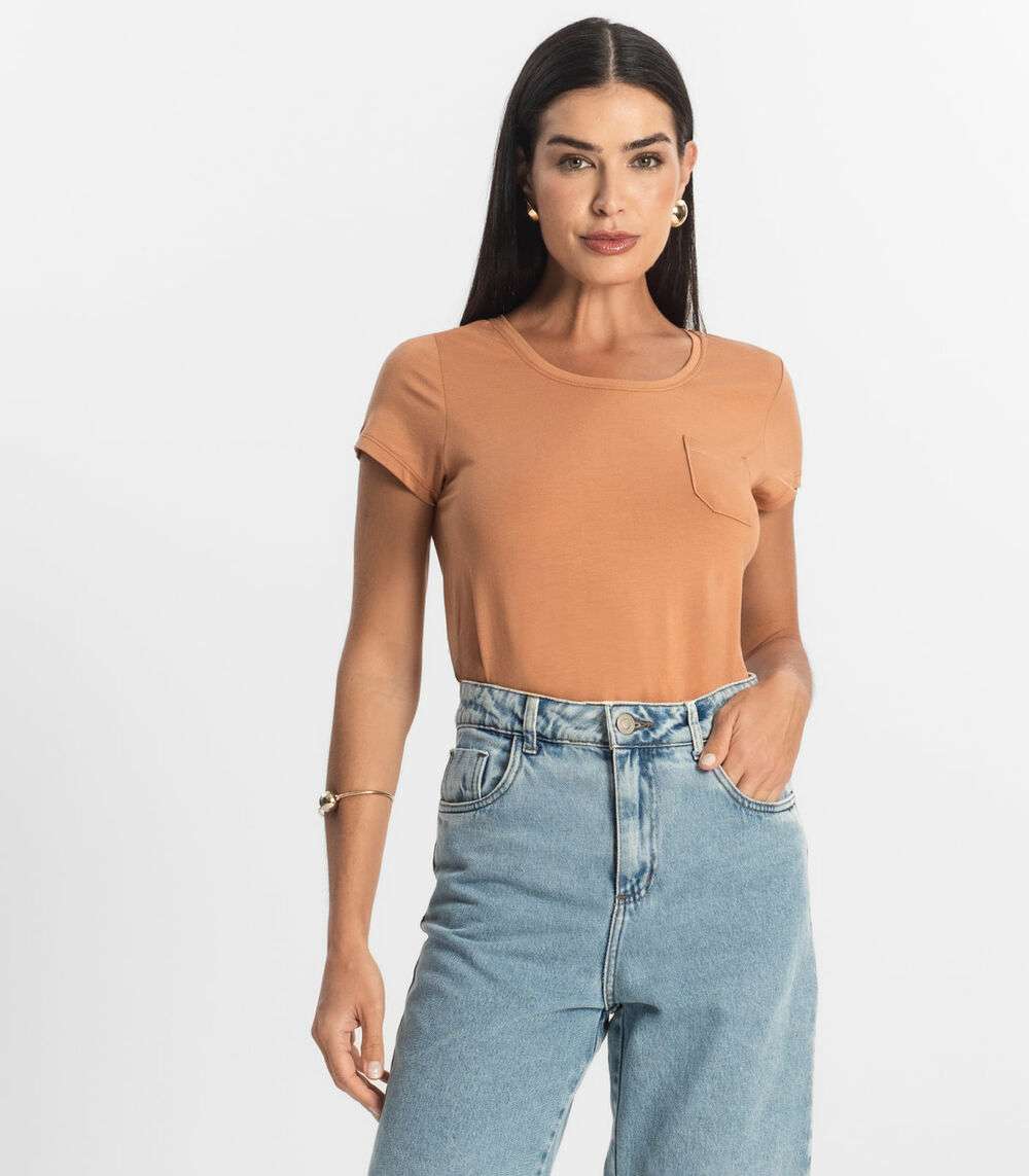 Blusa Feminina Viscotorcion Com Bolso Rovitex Marrom