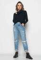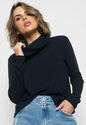 Blusa Golão Manga Longa Canelada Fashion Preto
