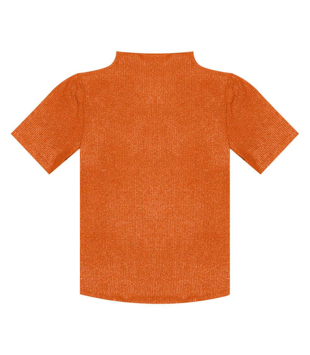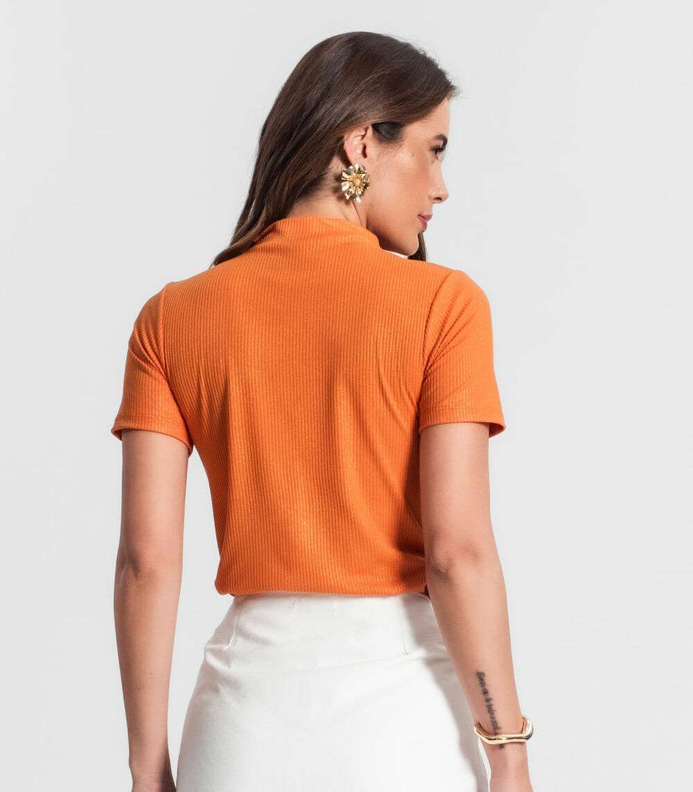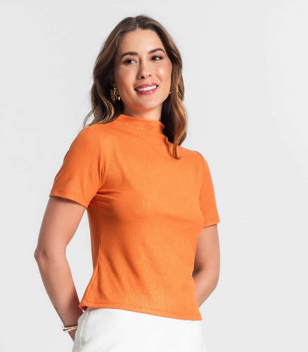 Blusa Gola Alta Em Ribana Canelada Lurex Rovitex Laranja