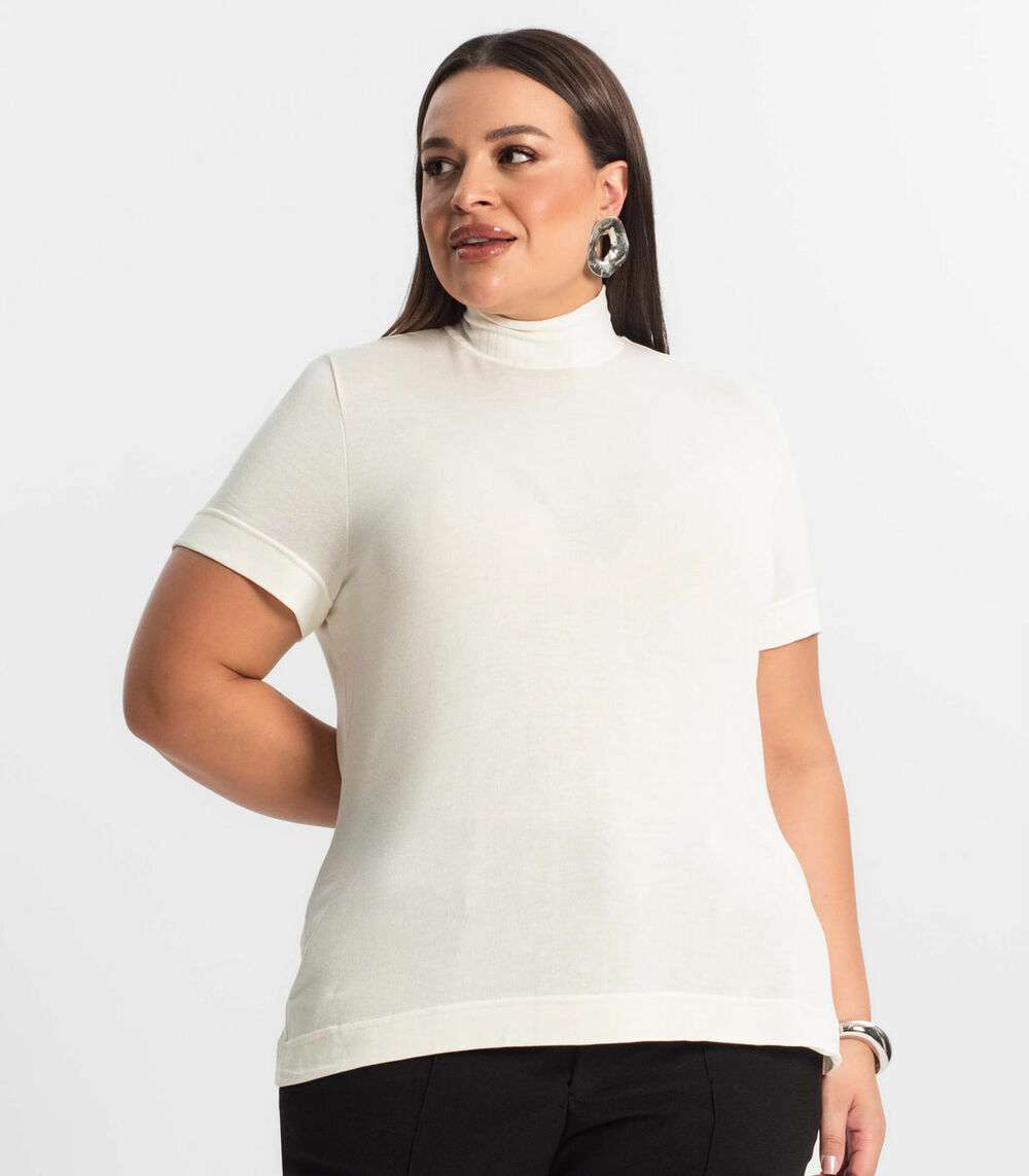 Blusa Gola Alta Feminina Plus Size Secret Glam Bege