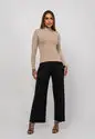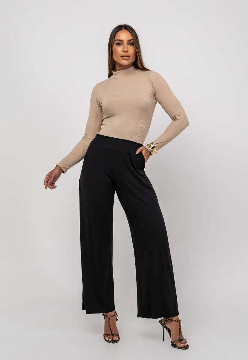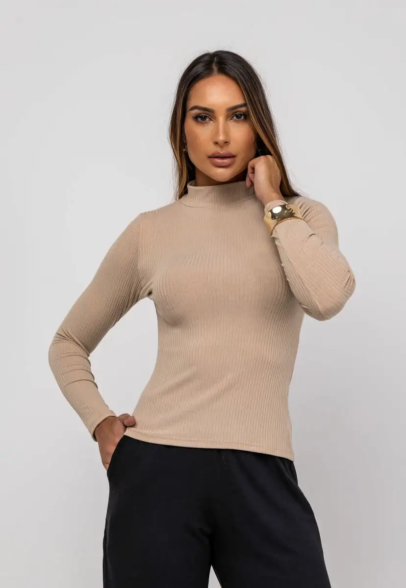 Blusa Gola Alta Manga Longa Malha Canelada Bege Salvatore Fashion