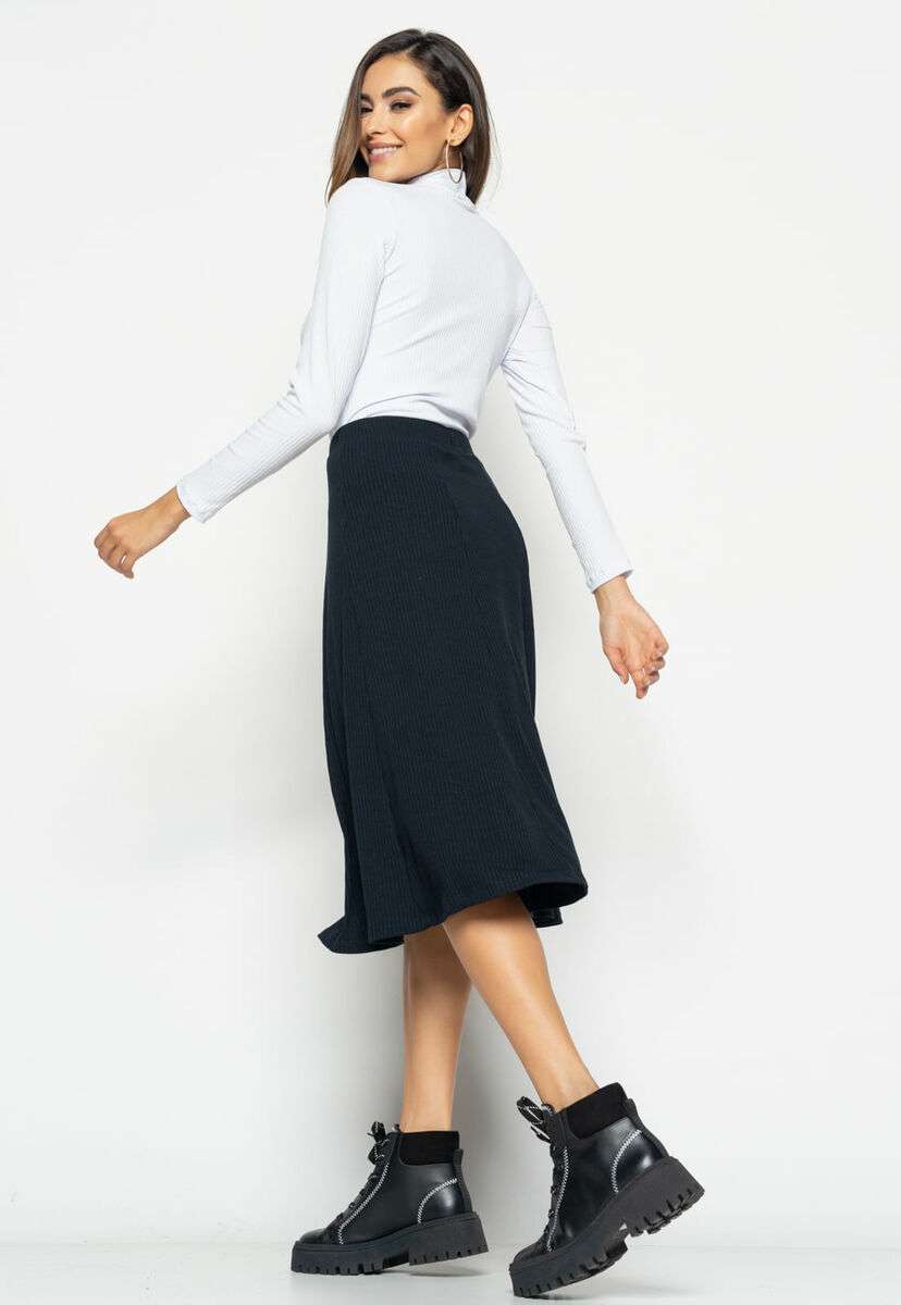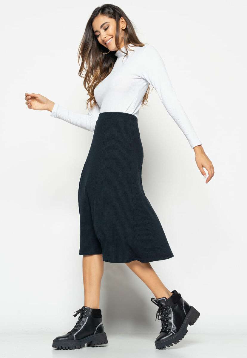 Blusa Gola Alta Manga Longa Malha Canelada Branco