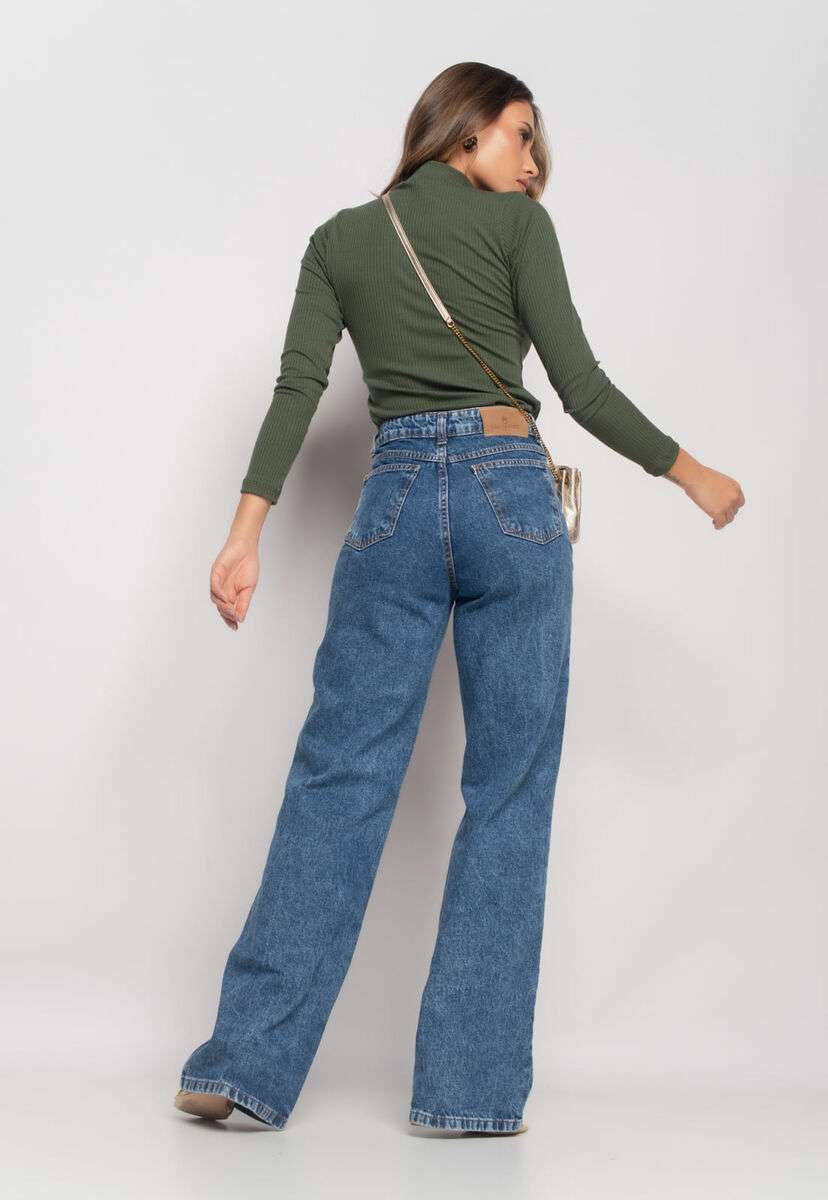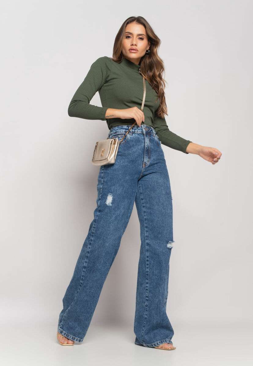 Blusa Gola Alta Manga Longa Malha Canelada Verde Salvatore Fashion