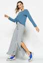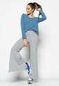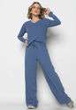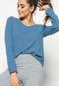 Blusa Gola V Manga Longa Canelada Azul Claro Salvatore Fashion