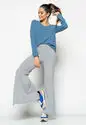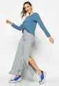 Blusa Gola V Manga Longa Canelada Azul Claro Salvatore Fashion