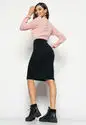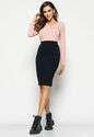Blusa Gola V Manga Longa Canelada Rosa Claro