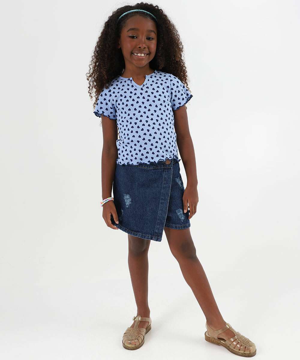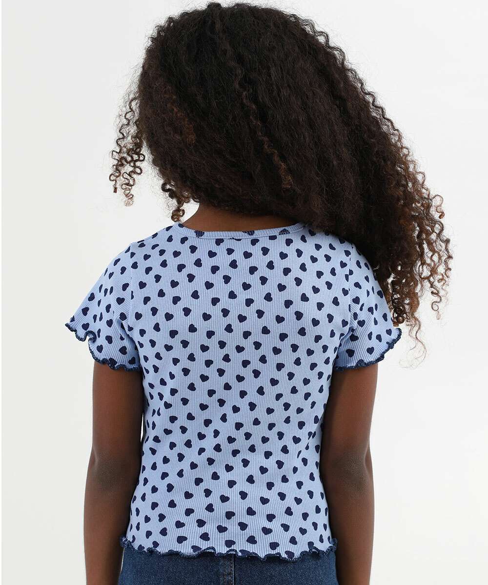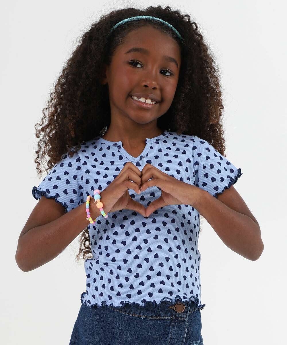 Blusa Infantil Canelada Corações Marisa Tam 4 a 10 Azul