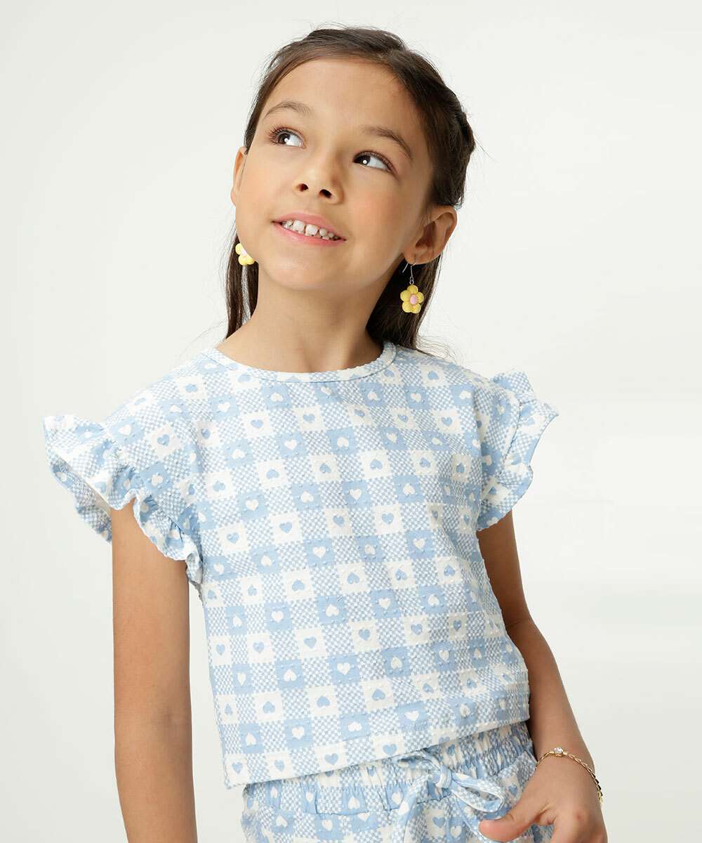 Blusa Infantil Estampa Xadrez E Corações Marisa Tam 4 a 10