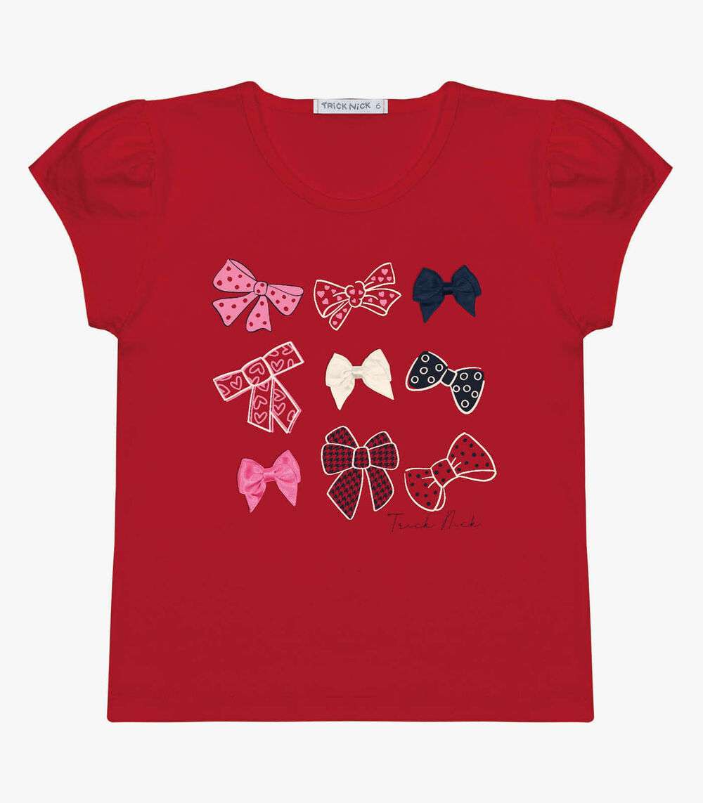 A Blusa Infantil Feminina Laços Trick Nick é uma peça encantadora e confortável, confeccionada em cotton leve para garantir suavidade e respirabilidade. Destaca-se pelo decote em friso que adiciona um toque de elegância, e pelo franzido localizado nas mangas que confere um detalhe feminino e moderno. A estampa com glitter transparente oferece um brilho delicado, enquanto os laços aplicados na costura proporcionam um charme adicional.