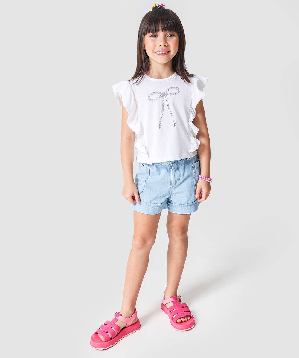 Blusa Infantil Laços Babado Marisa Tam 4 a 10 Off White