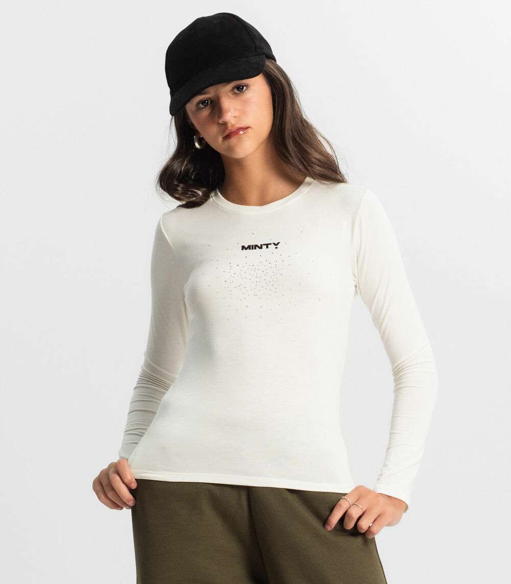 Blusa Juvenil Com Strass Manga Longa Minty Bege