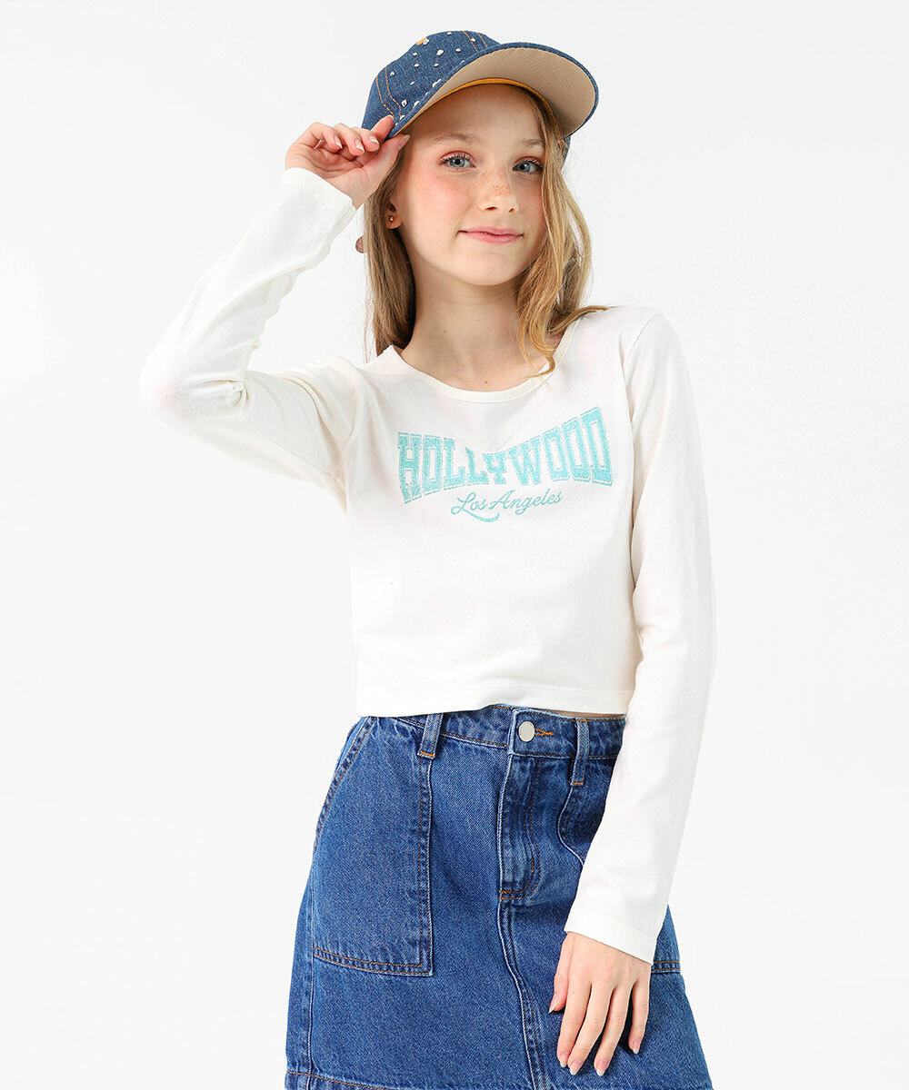 Blusa Juvenil Cropped Manga Longa Marisa Tam 10 a 16 Off White