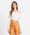 Blusa Juvenil Feminina Manga Longa Canelada Minty Bege