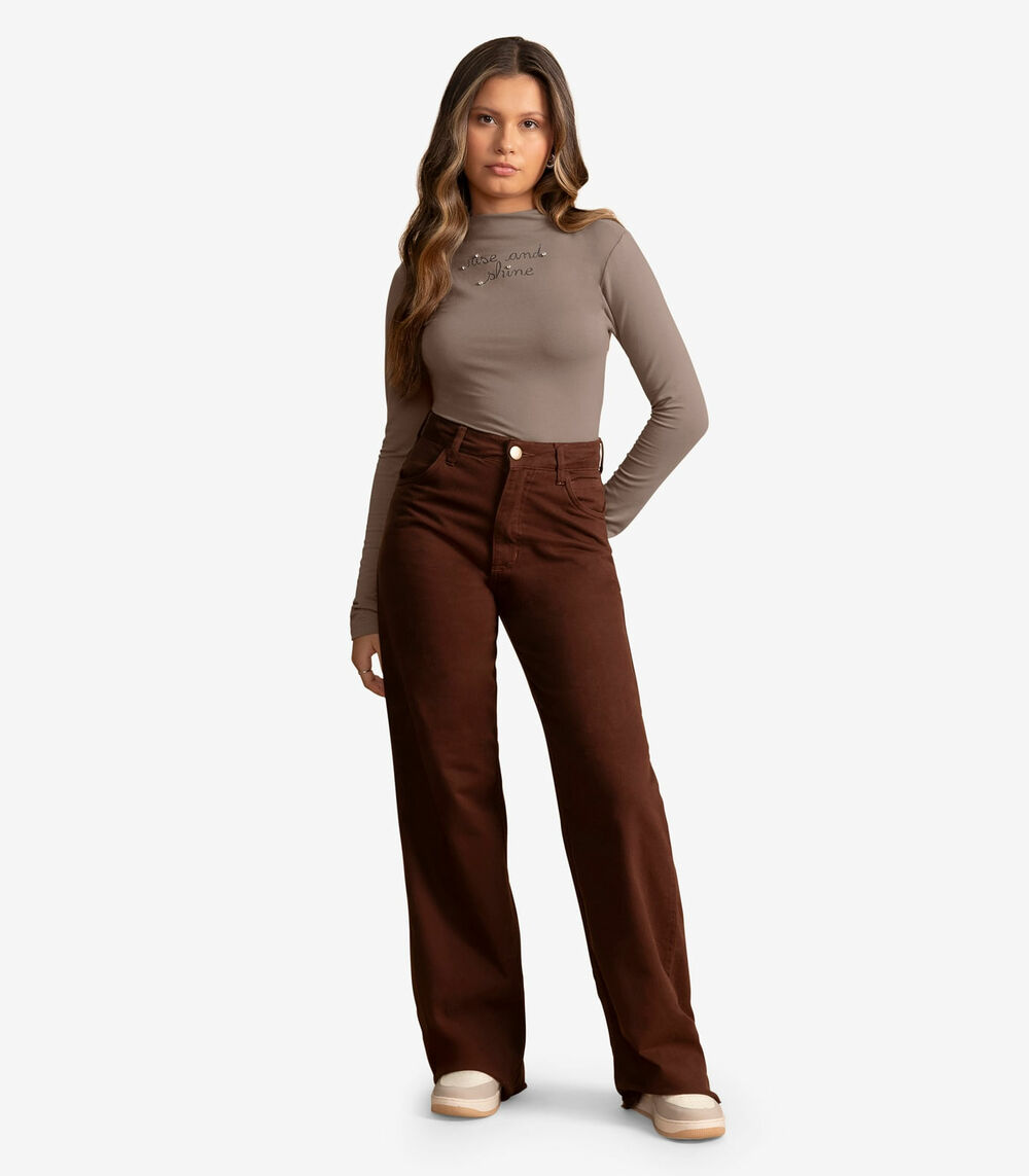 Blusa Juvenil Longa Molecotton E Rebites Minty Marrom