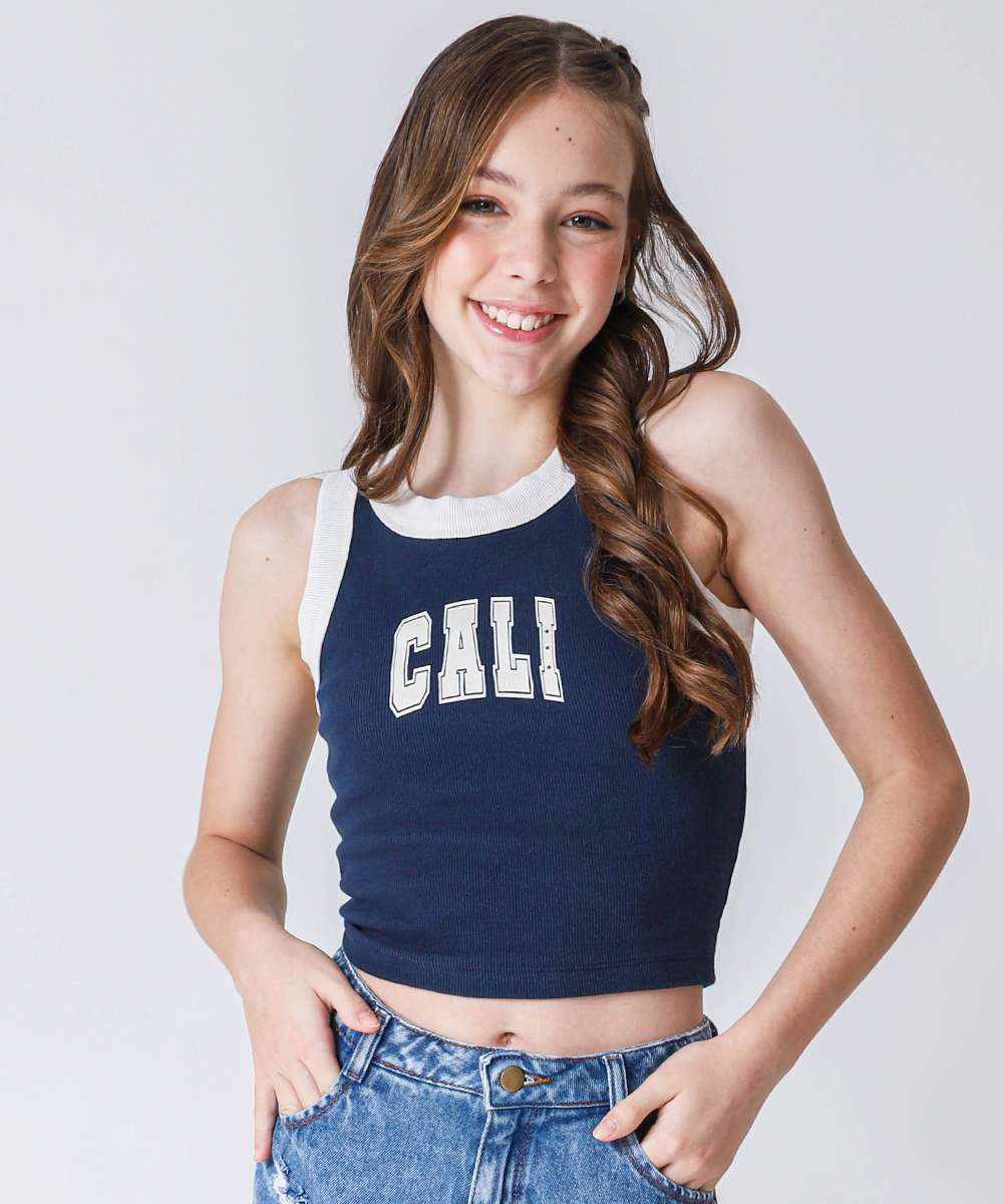 Blusa Juvenil Regata Canelado Marisa Tam 10 a 16 Azul