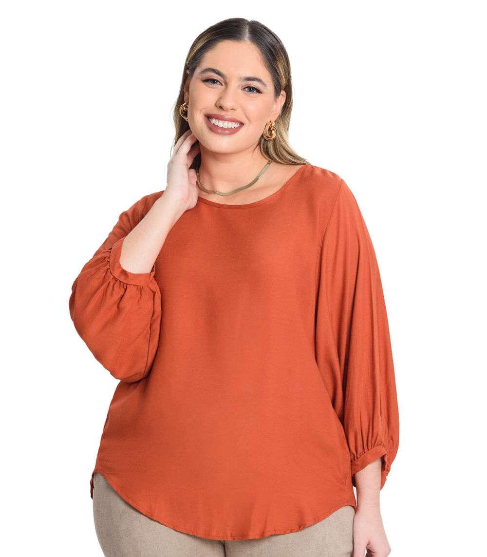 Blusa Manga 3/4 Viscose Sarjada Twill Secret Glam Vermelho