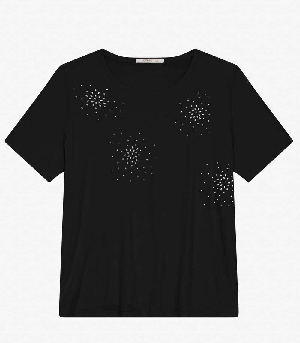 Blusa Manga Curta em Viscotorcion Secret Glam Preto