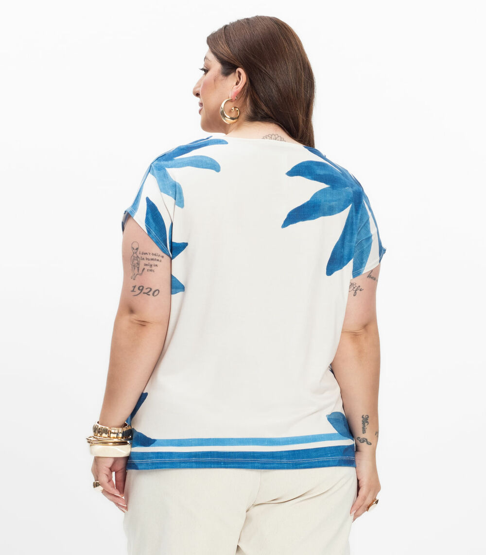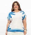 Blusa Manga Curta Feminina Plus Size Secret Glam Azul