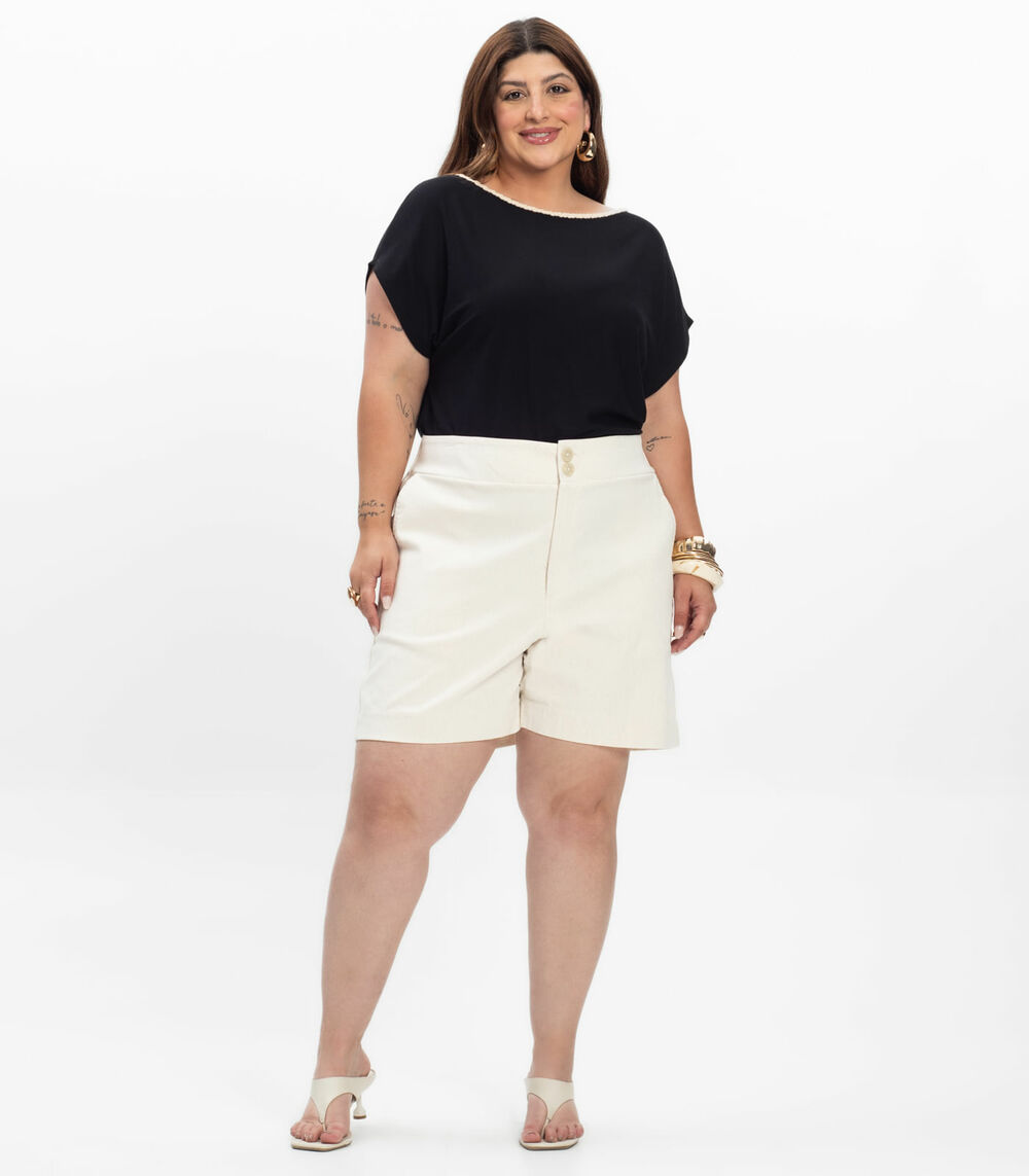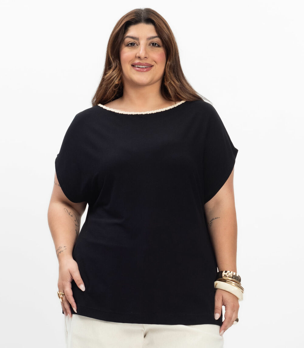Blusa Manga Curta Feminina Plus Size Secret Glam Marrom