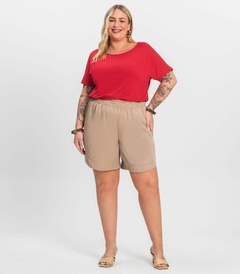 Blusa Manga Curta Feminina Plus Size Secret Glam Vermelho