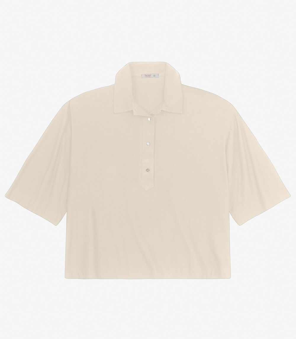 Blusa Manga Curta Plus Size Secret Glam Bege