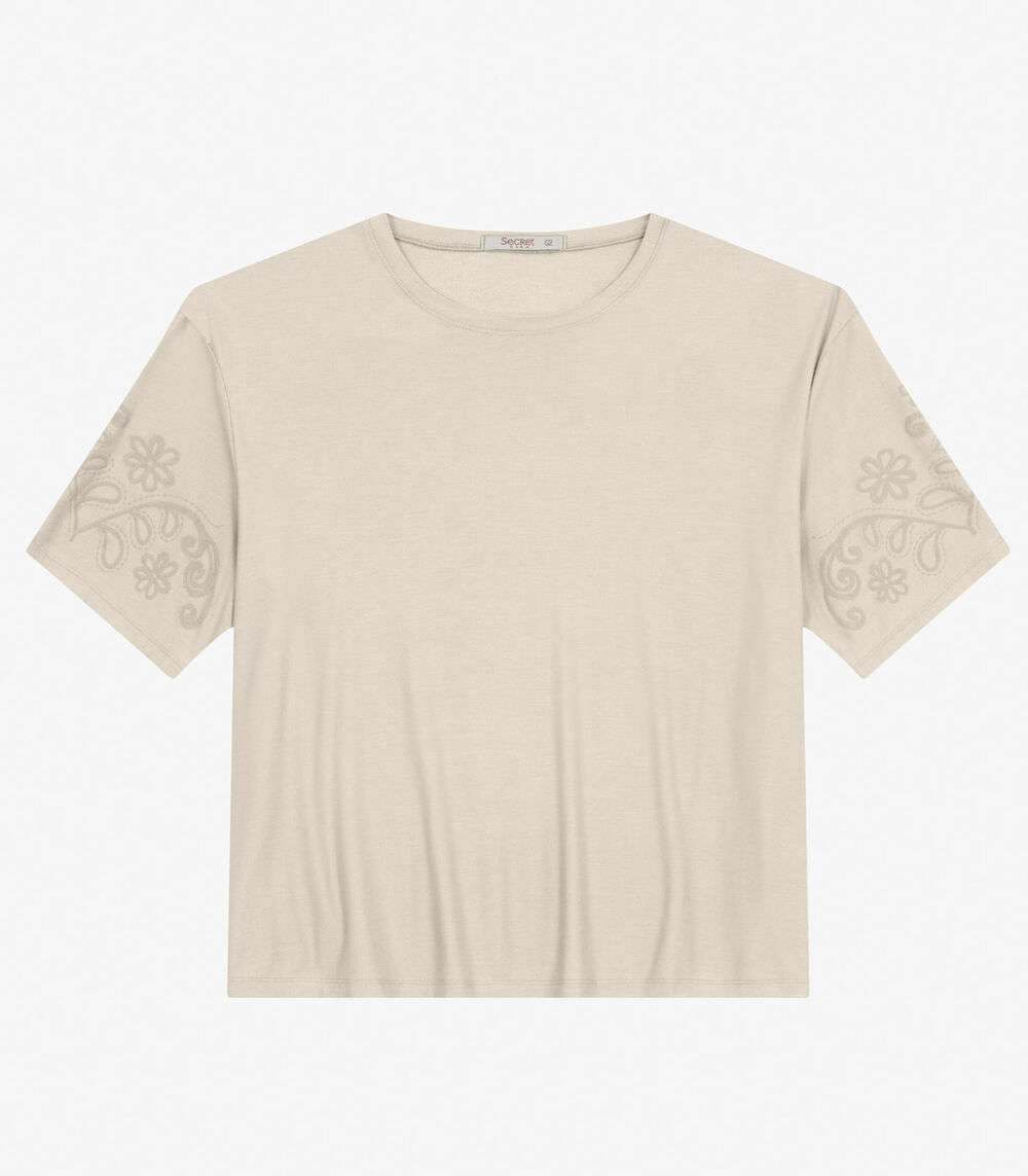 Blusa Manga Curta Plus Size Secret Glam Bege