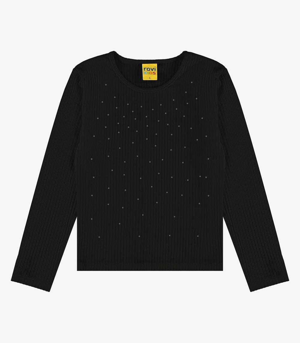 Blusa Manga Longa Com Aplicação Strass Rovi Kids Preto