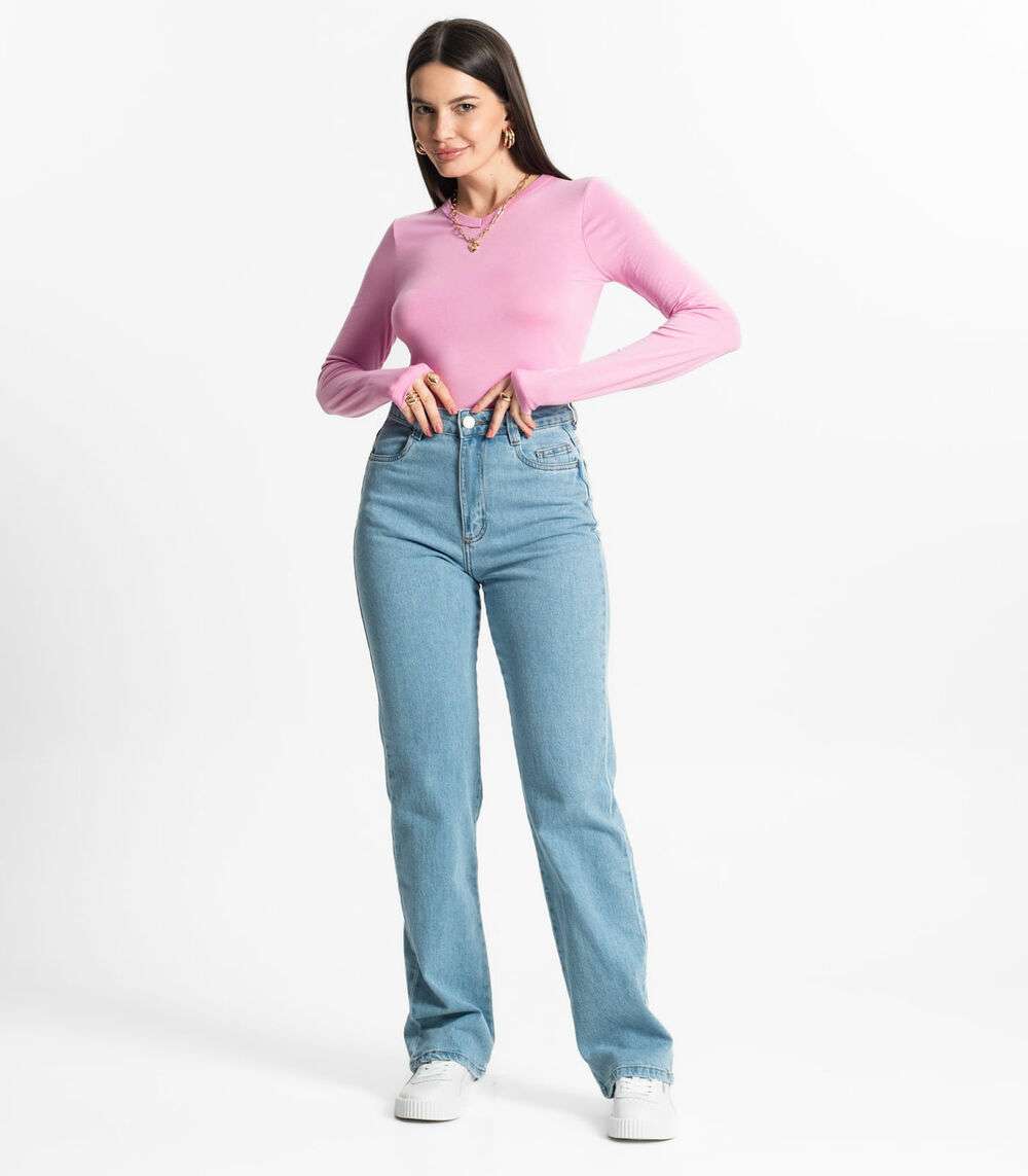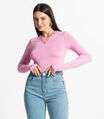 Blusa Manga Longa Decote V Básica Select Rosa