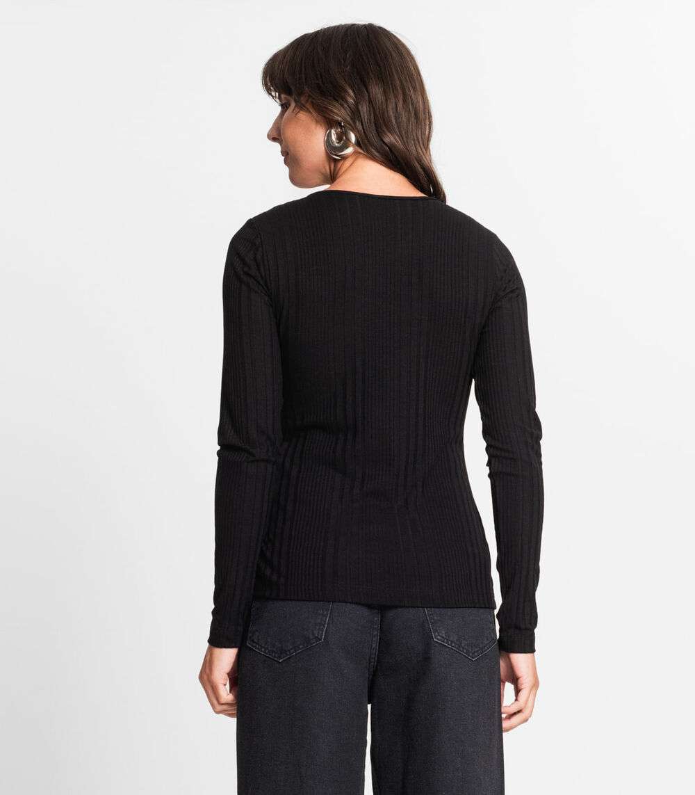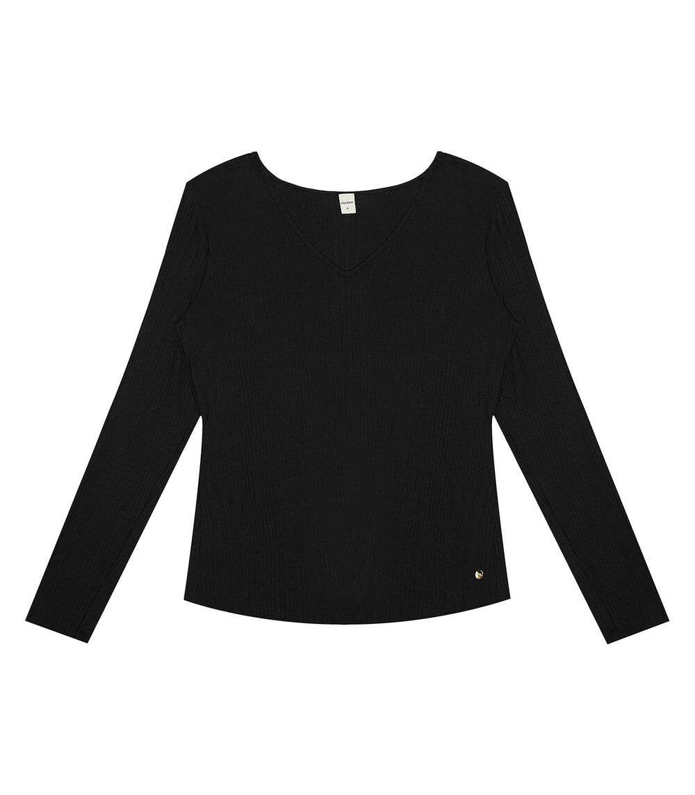 Blusa Manga Longa Em Ribana Canelada Rovitex Preto