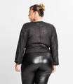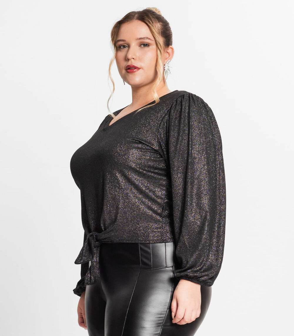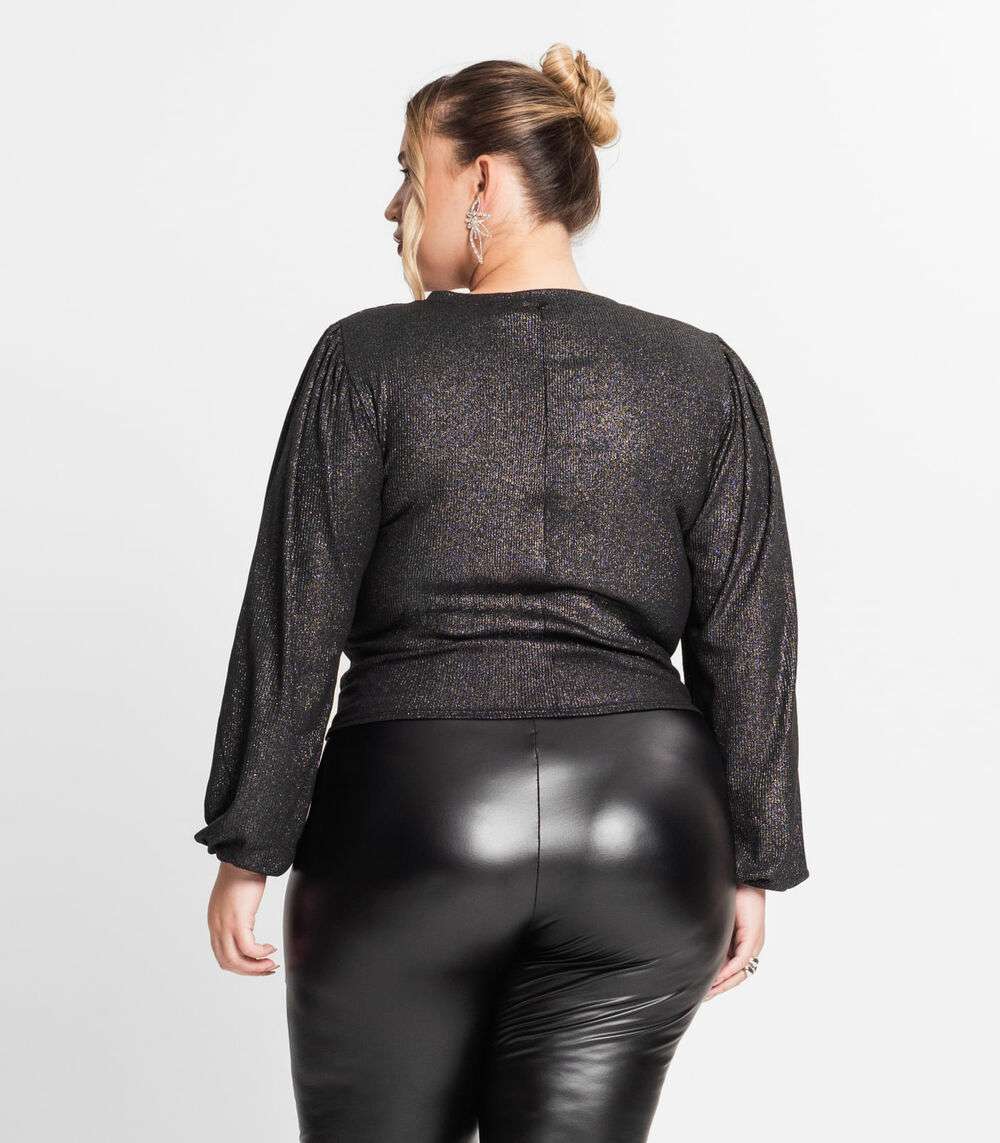 A Blusa Manga Longa Em Ribana Canelada Secret Glam é a definição de elegância e estilo. Feita em ribana canelada lurex, proporciona um toque de sofisticação e brilho sutil. Com gola dupla talhada e detalhes de franzidos localizados, destaca-se pelo seu design refinado. Na barra, possui um prolongamento para formar um laço, adicionando um charme extra à peça. Ideal para ocasiões especiais ou para dar um toque de glamour ao seu visual do dia a dia.